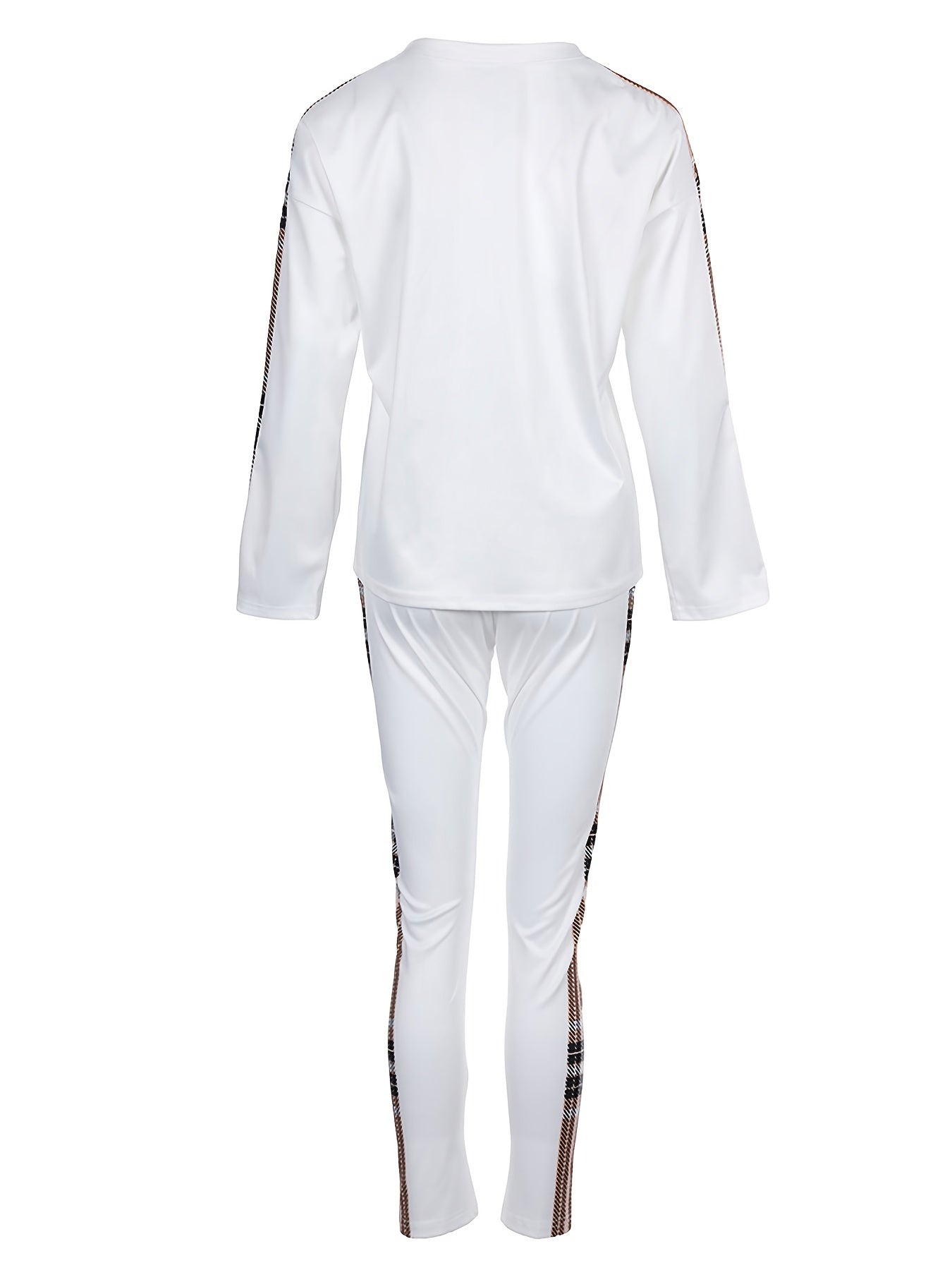 Trendy Two-Piece Plaid Panel Set - Long Sleeve Faith Print Tee with Slim Fit Elastic Waist Pants - Women's Casual Outfit for Daily Wear, Autumn and Winter Seasons