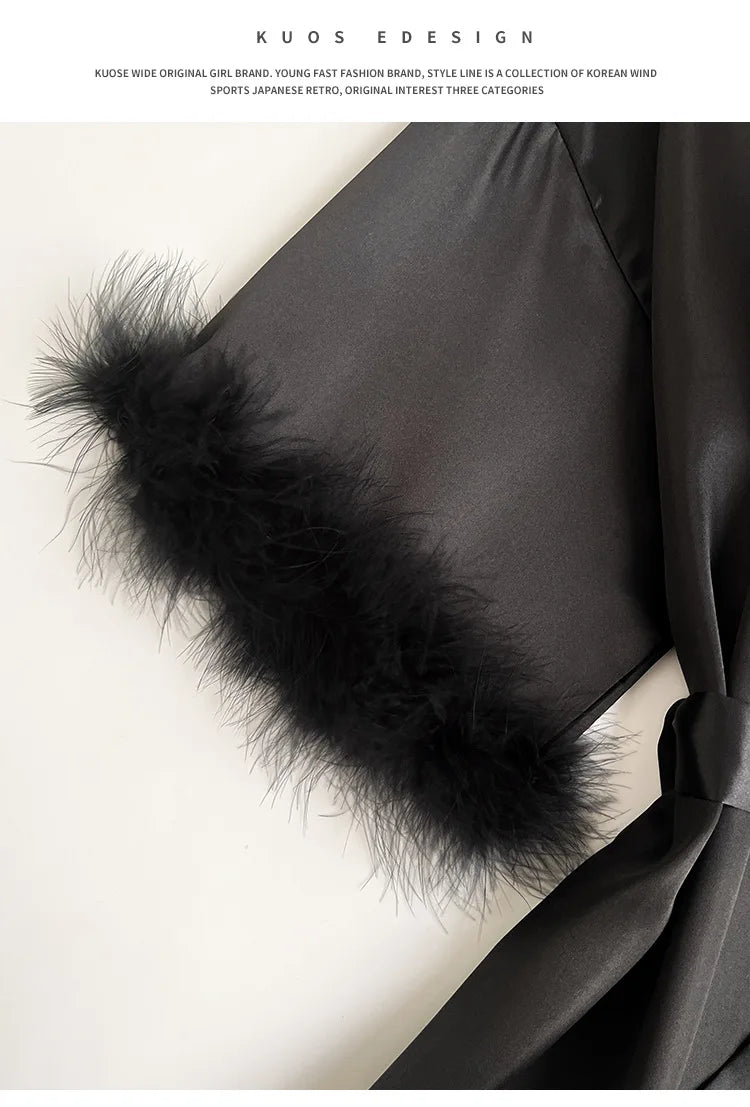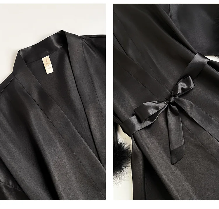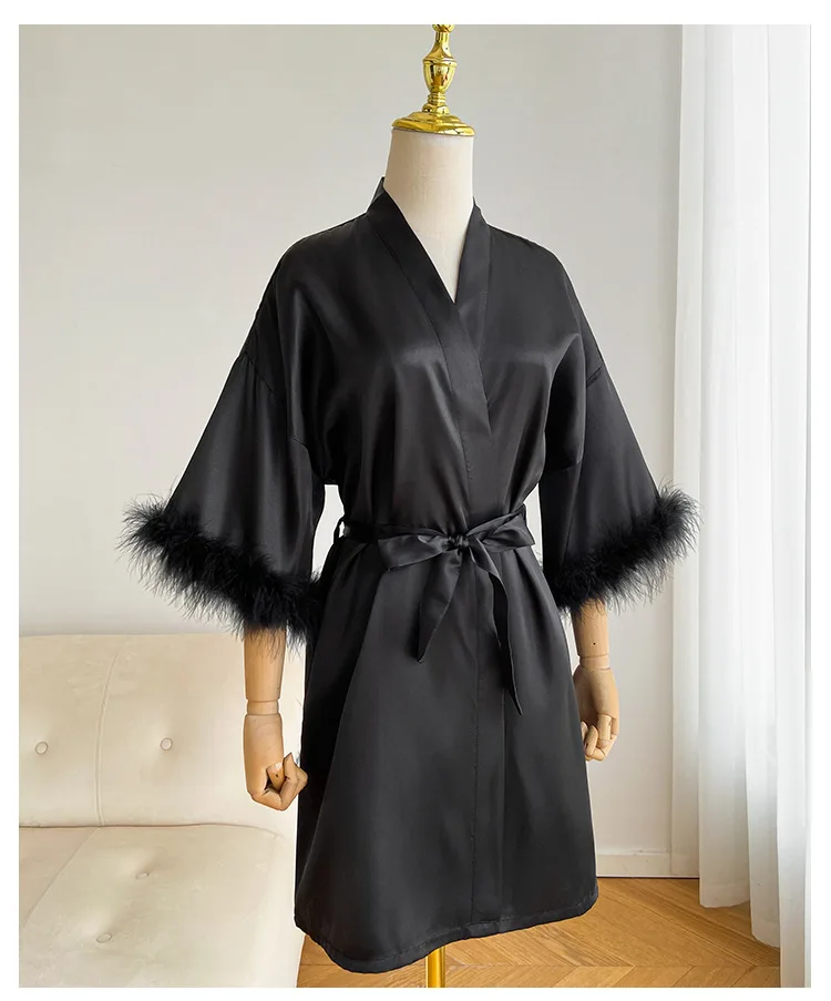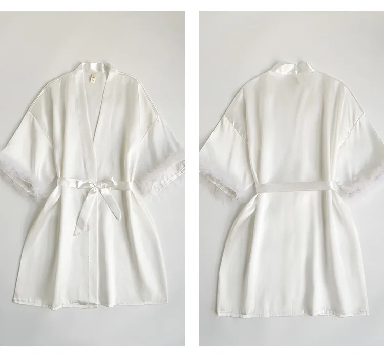Wedding Bride Robe Morning Gown Elegant Feather Female Kimono Bathrobe Gown Sexy Rayon Summer New Sleepwear Nightwear Lingerie