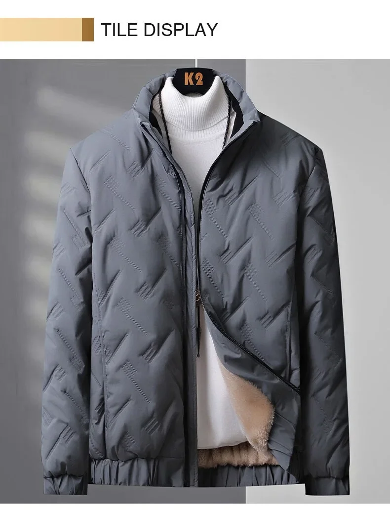 Winter Casual Fashion Streetwear Jacket Mens Puffer Coats Mens Clothes Standing Collar Warm Top Coat Middle-aged Men With Plush