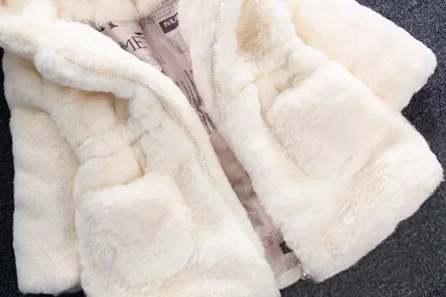 Winter Girl's Coat Furry New Hooded Bear Solid Color Long-sleeved Coat Thick Warm Cute Girls All Fashion Shawl