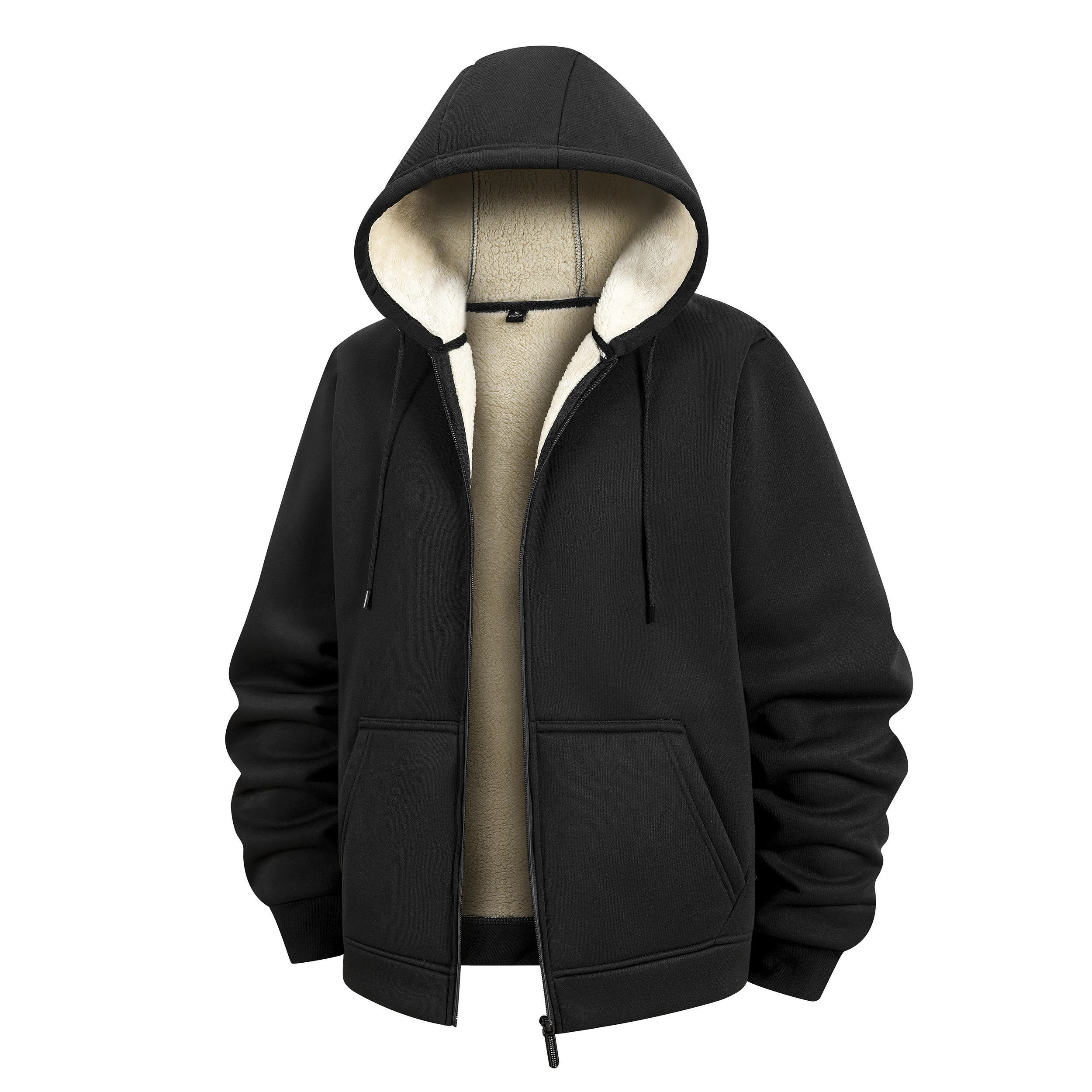 Winter Lambswool Coats Thicken Warm Jackets Long Sleeve Zipper Hoodies Casual Sports Fleece Black Coat Hooded Men Outdoor Jacket