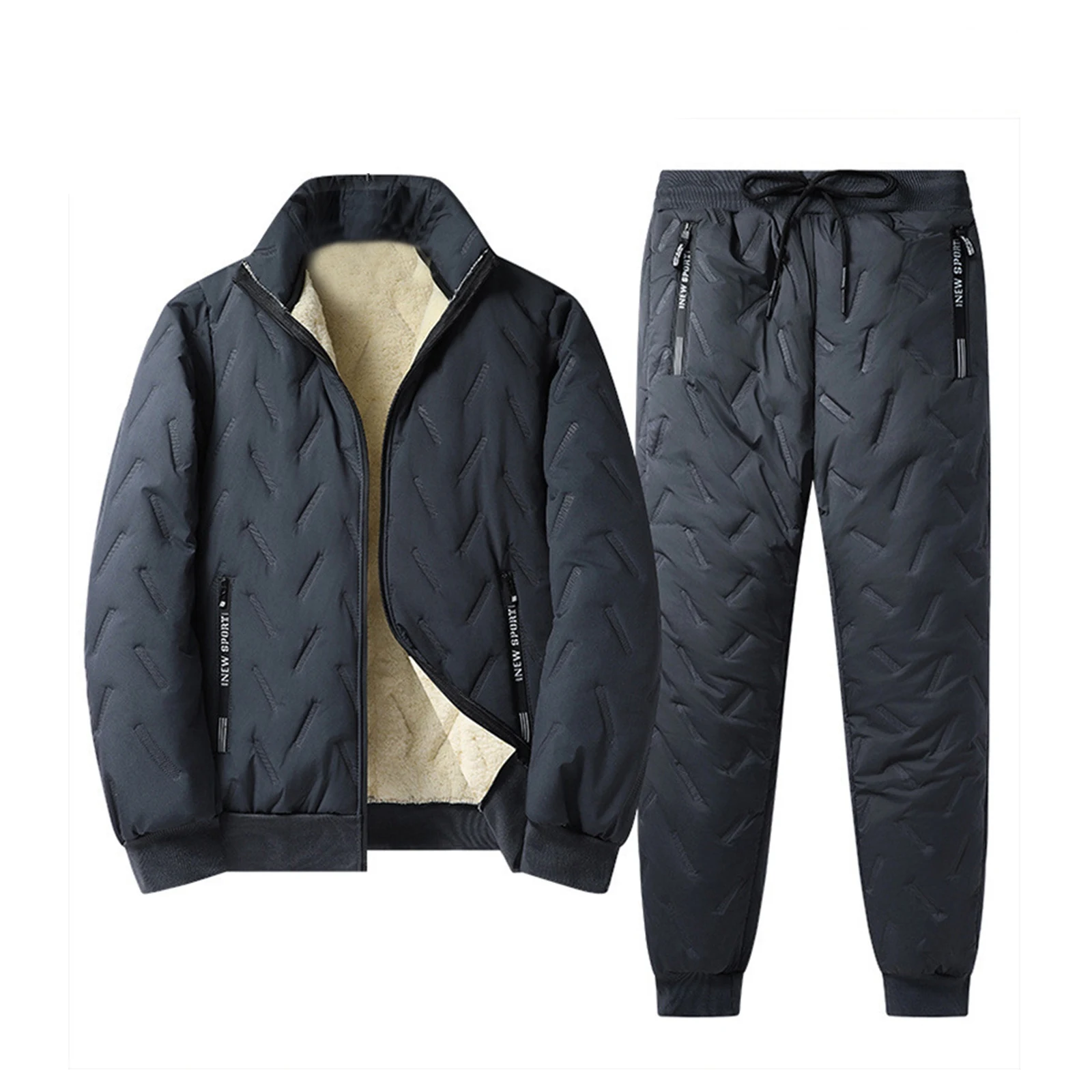 Men's Thickened Solid Color Casual SPORT Pants + Solid Color Fleece Warm Jacket NEW SPORT Pocket Label
