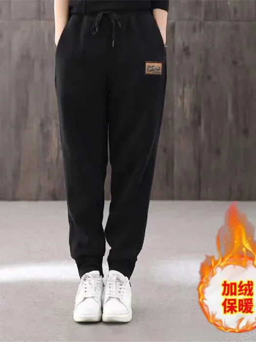 Winter Thick Warm Trousers Casual Sports Pants for Women High Waist Lamb's Wool Harem Pants with Fleece Cuffed Joggers 4XL