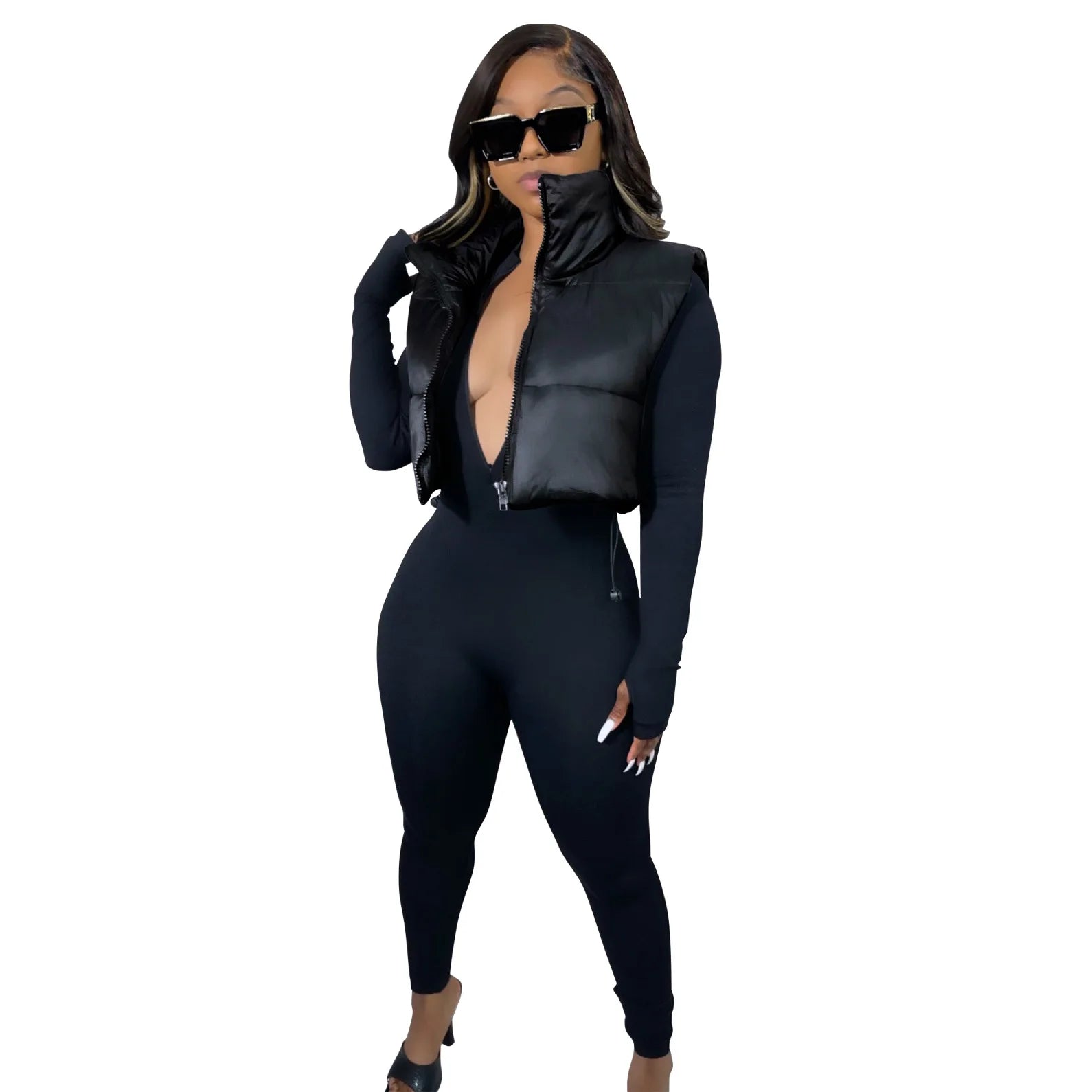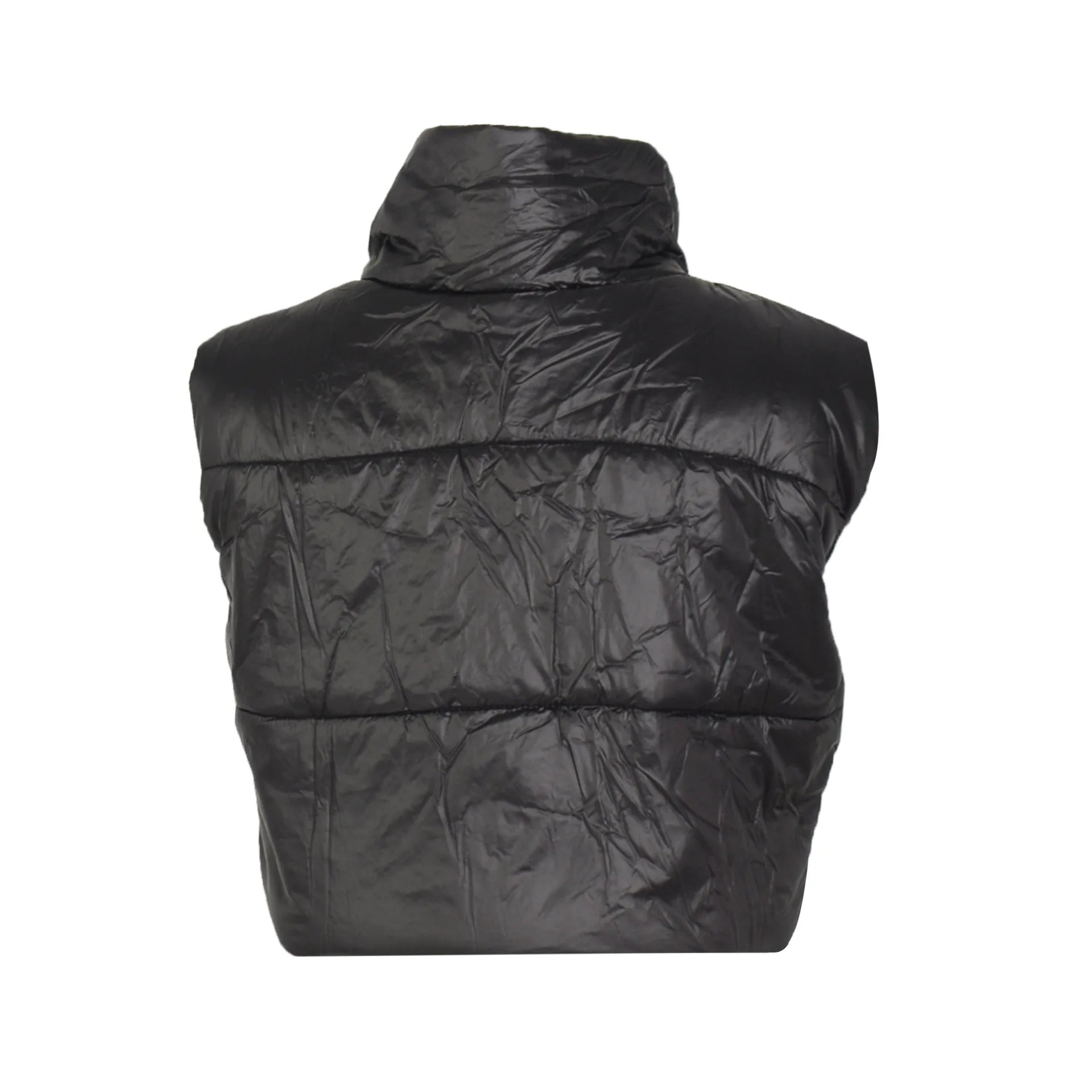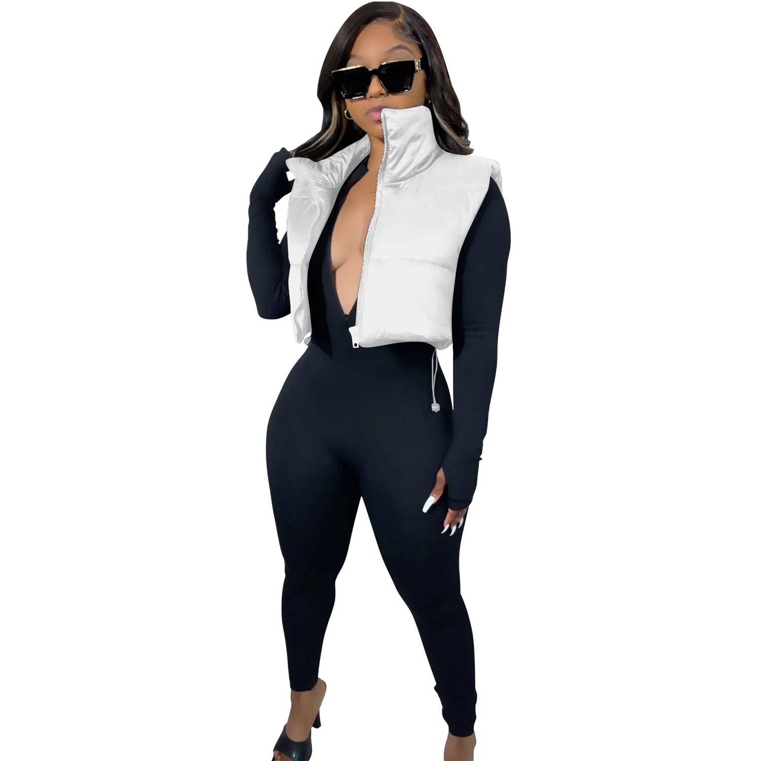 Women's Winter Vest Fashion Faux Leather Padded Jacket Coat Vintage PU Black And White Female Short Waistcoat Chic Clothes Tops