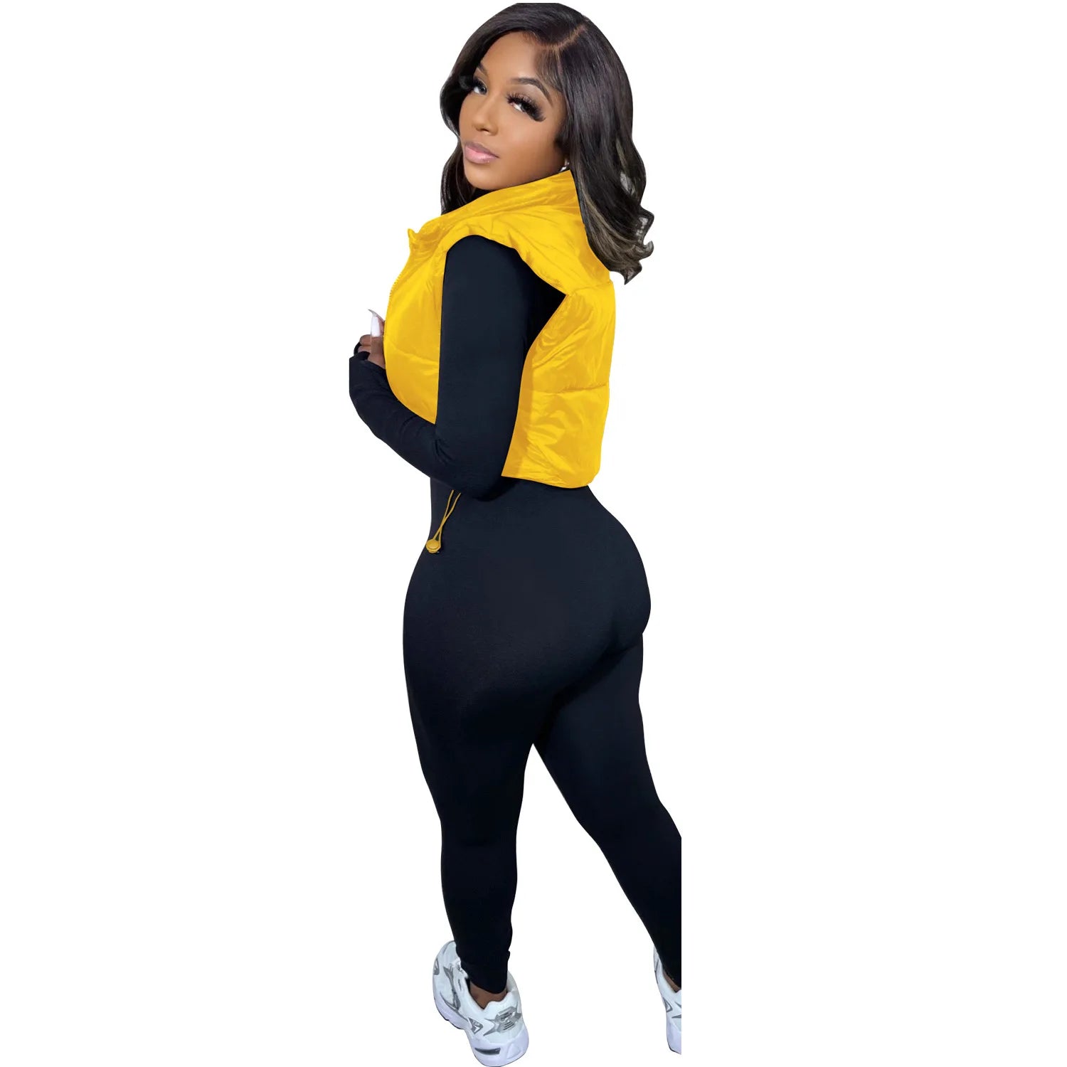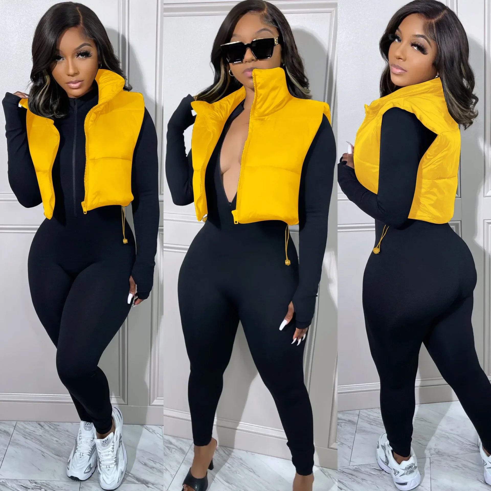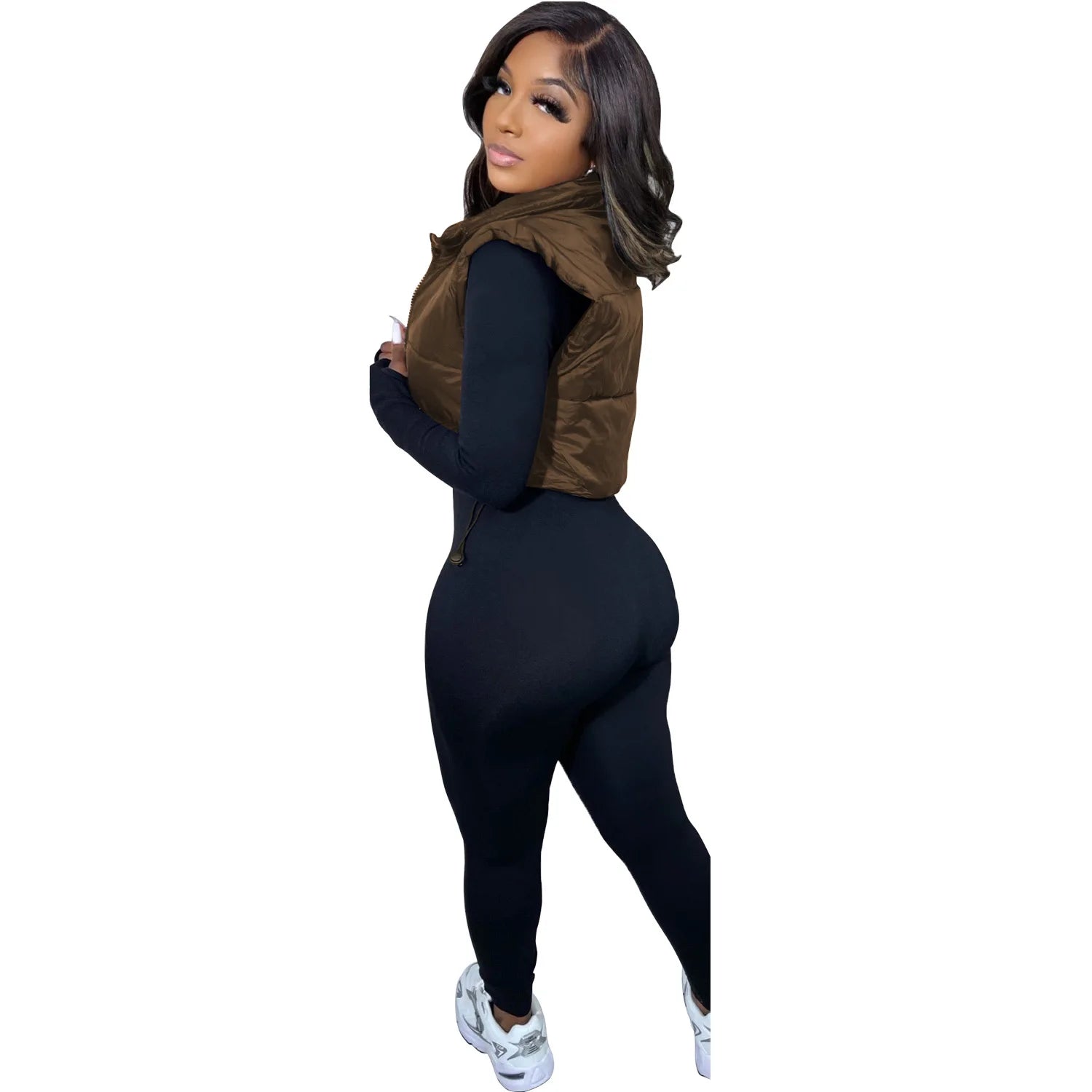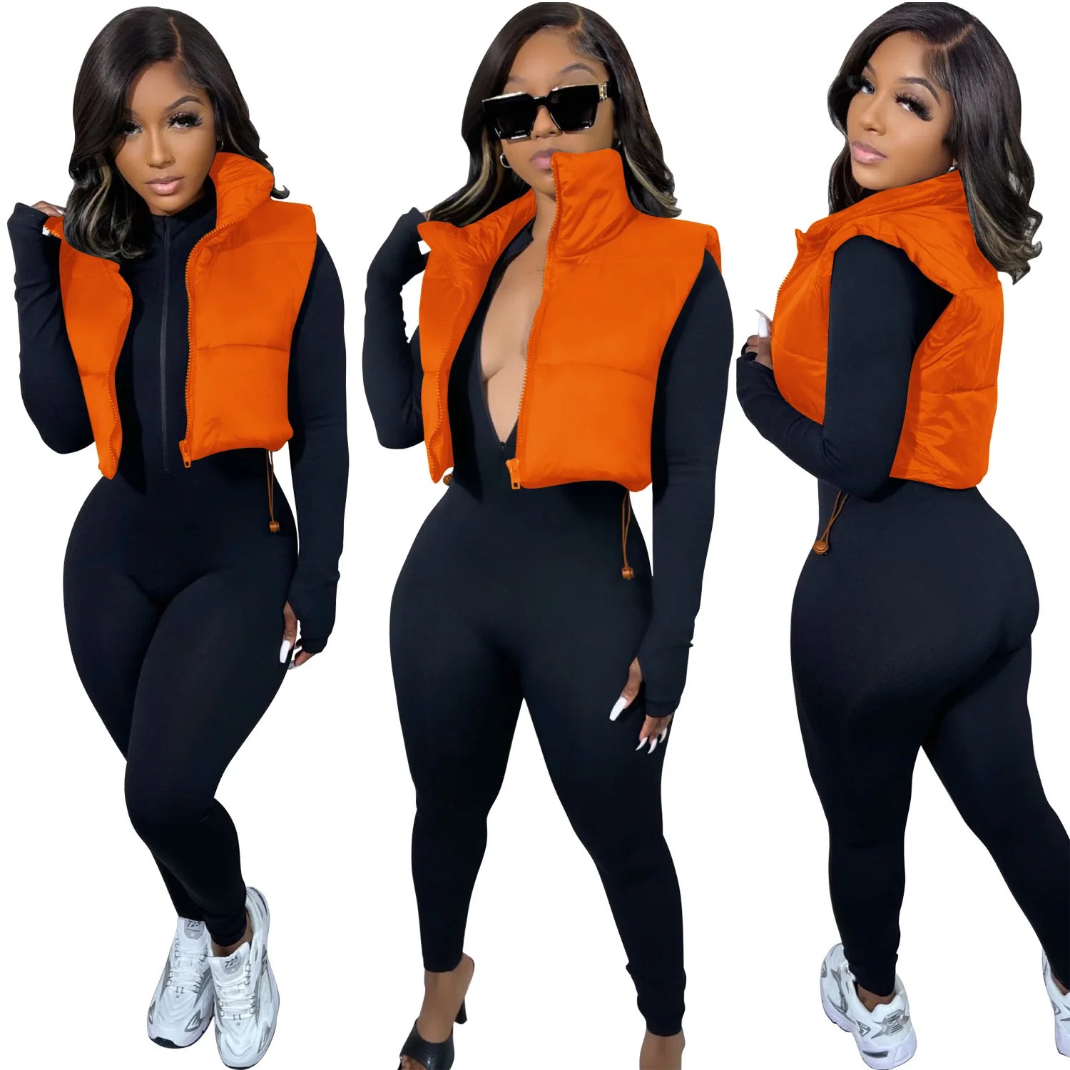 Women's Winter Vest Fashion Faux Leather Padded Jacket Coat Vintage PU Black And White Female Short Waistcoat Chic Clothes Tops
